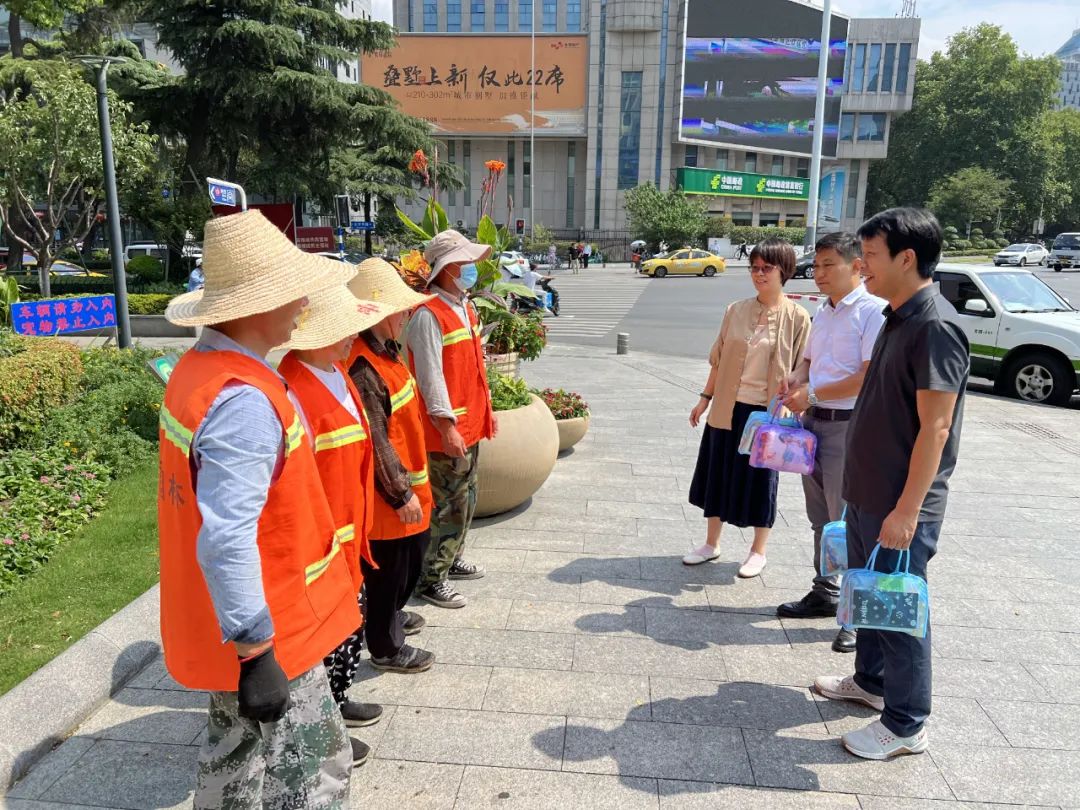 今年夏天,南京市氣象局接連發(fā)布高溫預(yù)警,為切實(shí)保障一線職工安全健康,確保酷暑天氣下各項(xiàng)工作安全開展,7月18日上午,區(qū)總工會(huì)、集團(tuán)黨支部、工會(huì)領(lǐng)導(dǎo)在浮橋南廣場(chǎng)慰問了高溫下堅(jiān)守在一線的園林班組,對(duì)他們頂烈日、戰(zhàn)高溫的吃苦耐勞精神表示關(guān)心和感謝。